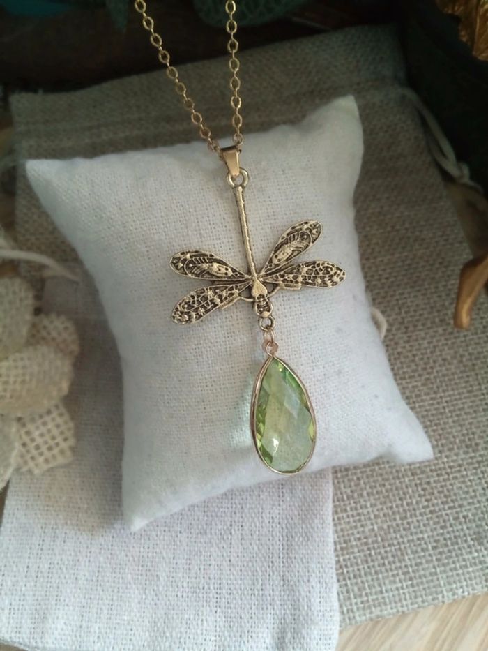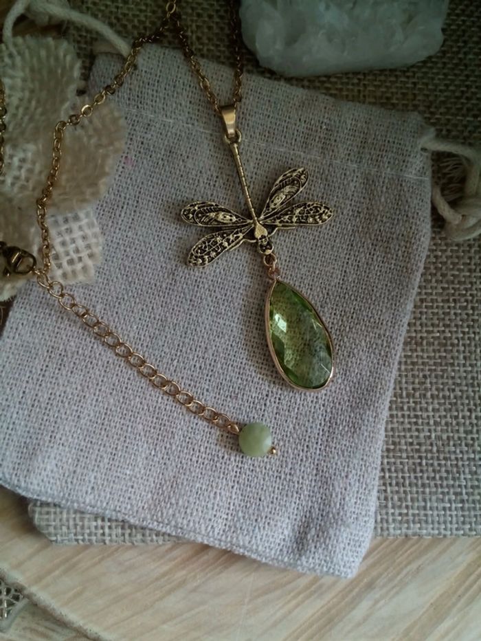 Collier bohème libellule et goutte en verre - photo numéro 1