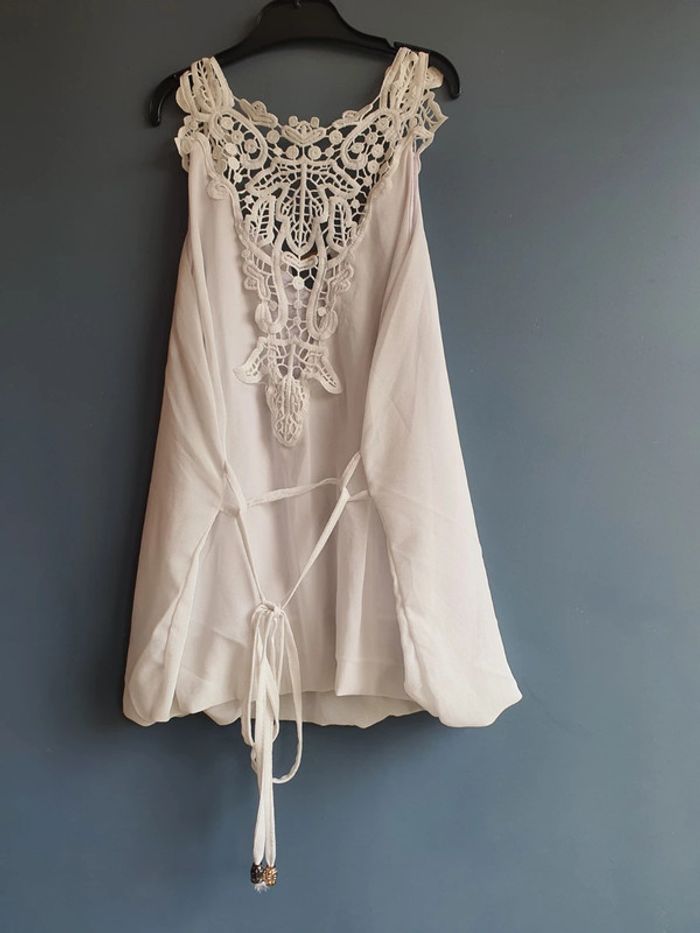 #femmeSmonikamaillard Blouse blanche , broderie Ceinture, taille ajustable S/M