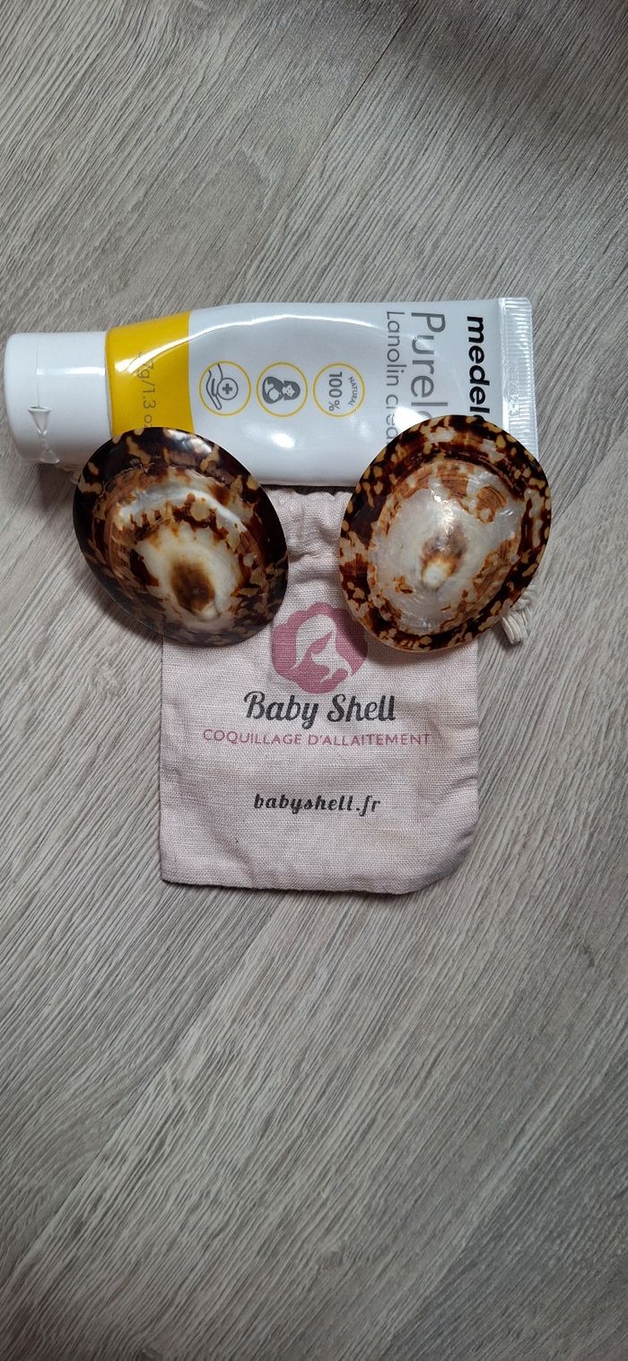 Lot allaitement en excellent état comprenant : - coquillages Baby Shell taille M avec pochon utilisés 2x - crème lanoline Purelan Medela ouverte il y a 1 mois (péremption 09/2025) - bouts de seins Mam taille L avec boite