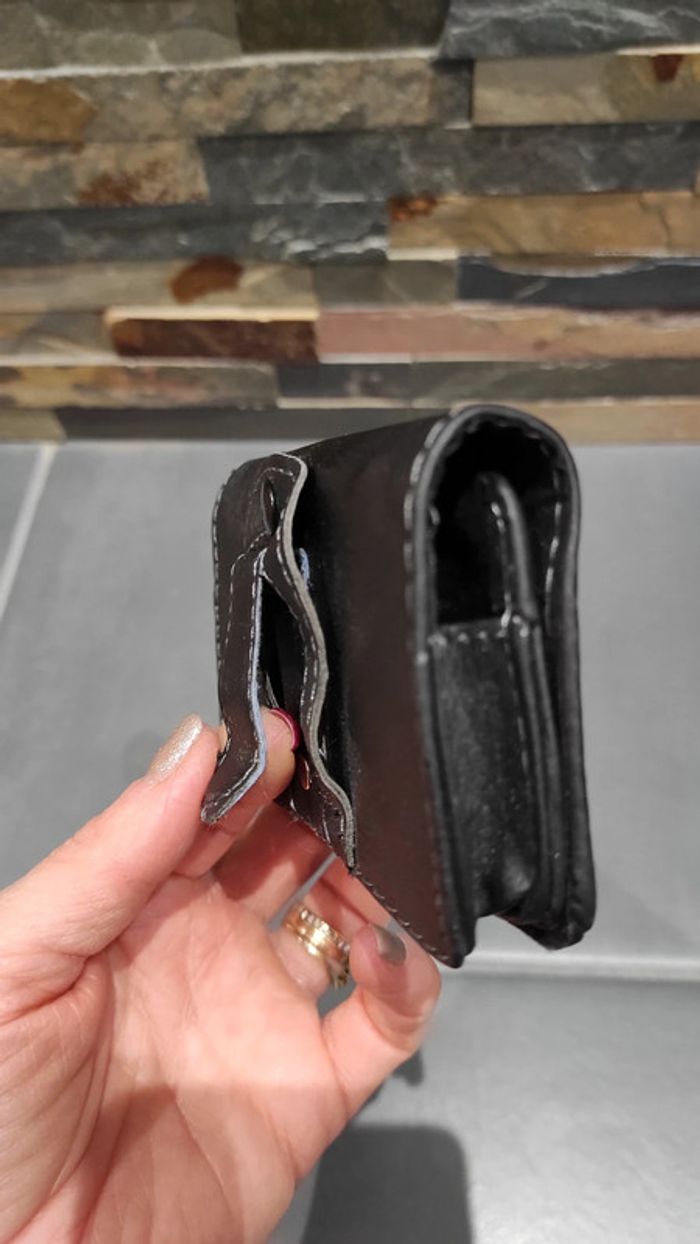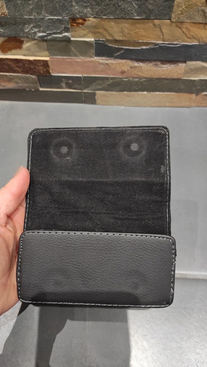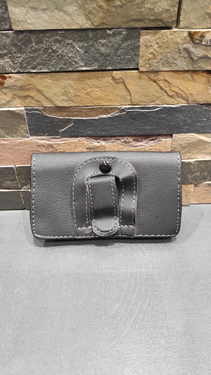 Housse de téléphone pour la ceinture. 12 cm de long pour 7 cm de large et 2,5 cm d'épaisseur. Petit défaut sur un coin (voir dernière photo).
