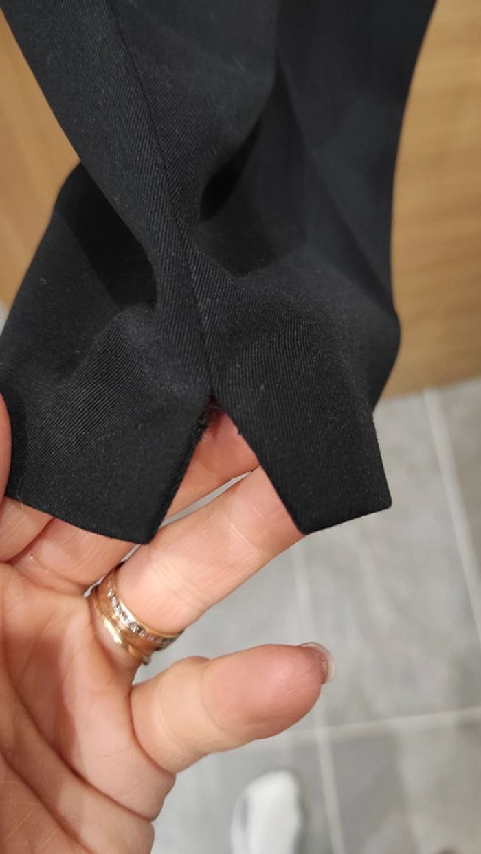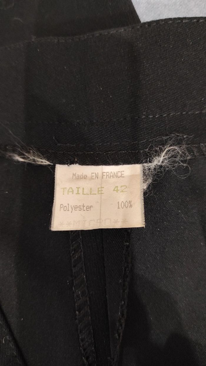 Fermeture par bouton et zip sur le devant. Deux fausses poches sur le devant. Petites fentes au niveau de la cheville. Taille 42.