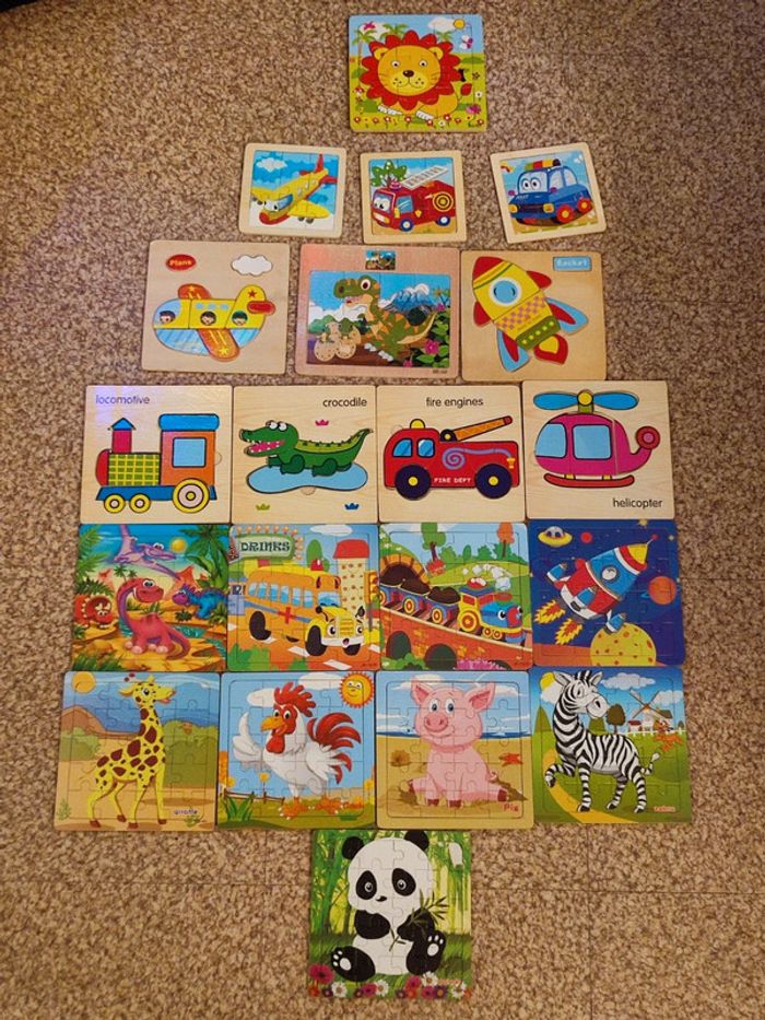 Lot de 20 puzzles en bois En bon état général Les 4 dernières photos montrent les défauts des puzzles les plus abîmés #julierosova_jouets #puzzlebois #puzzleenfant