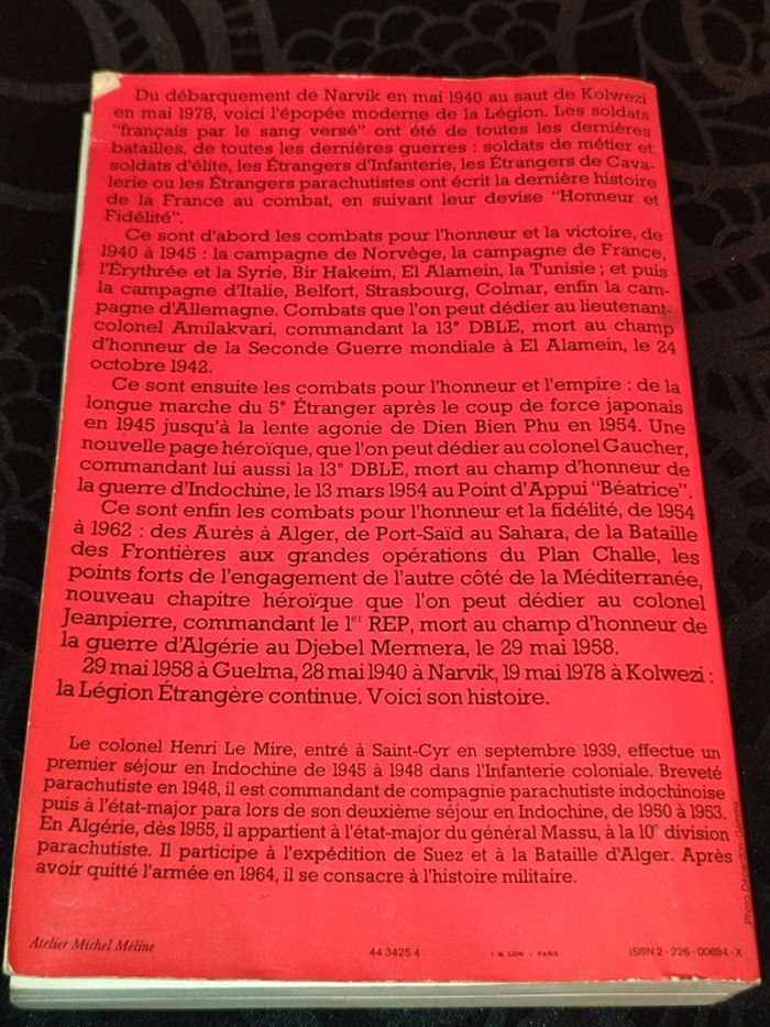 Livre histoire de la légion de Narvik à Kolwesi de Henri Le Mire Livre de 1978 Les pages avec photos se détachent avec l'usure