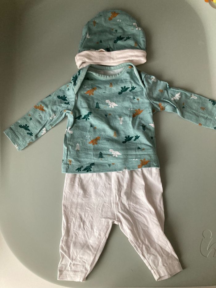 Ensemble très bon état car porté une fois. Contient pantalon, t-shirt manche longue et bonnet.