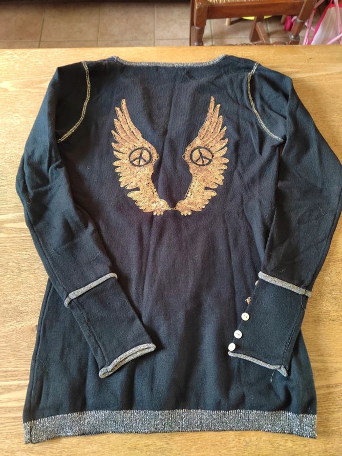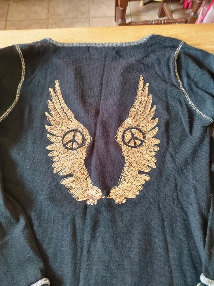 Petit pull fin ailes d'ange au dos. Il es marqué taille unique mais je le conseille pour u' 36/38 #petitpullnoir #petitpullfemme