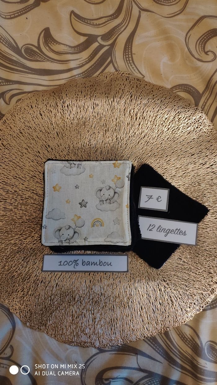 Tissu eko-tex français et éponge bambou noir 10 X10 cm pour bébé et démaquillante pour les mamans 😀.