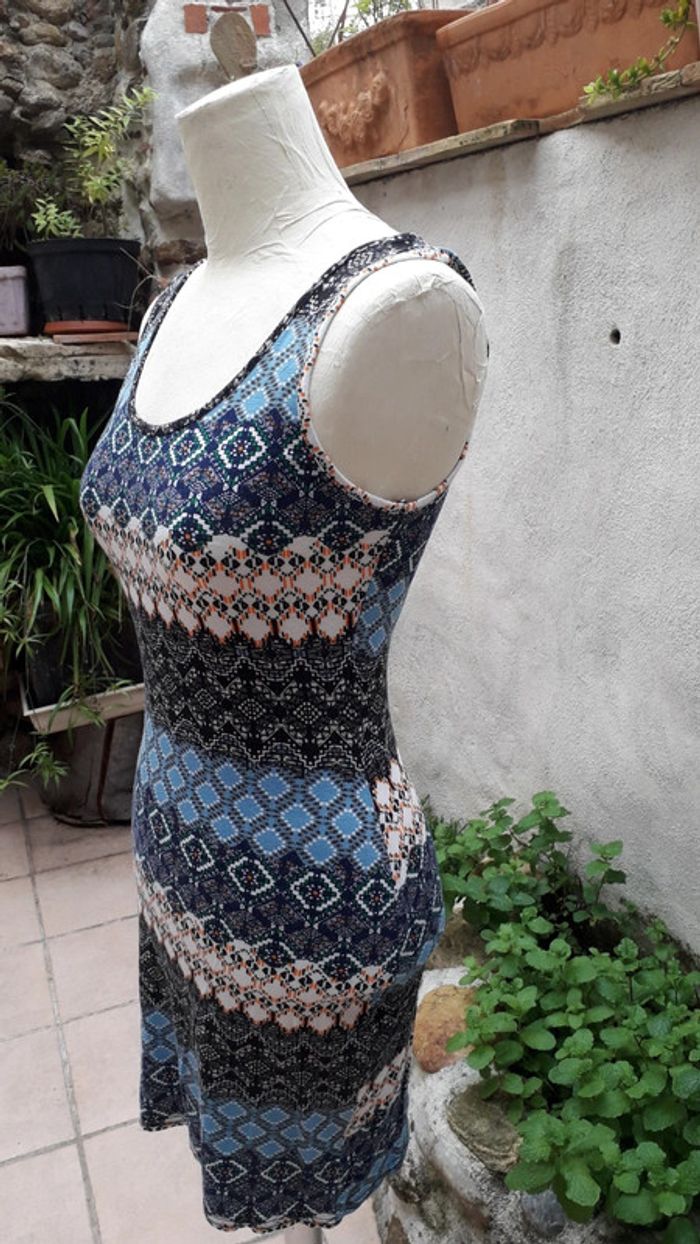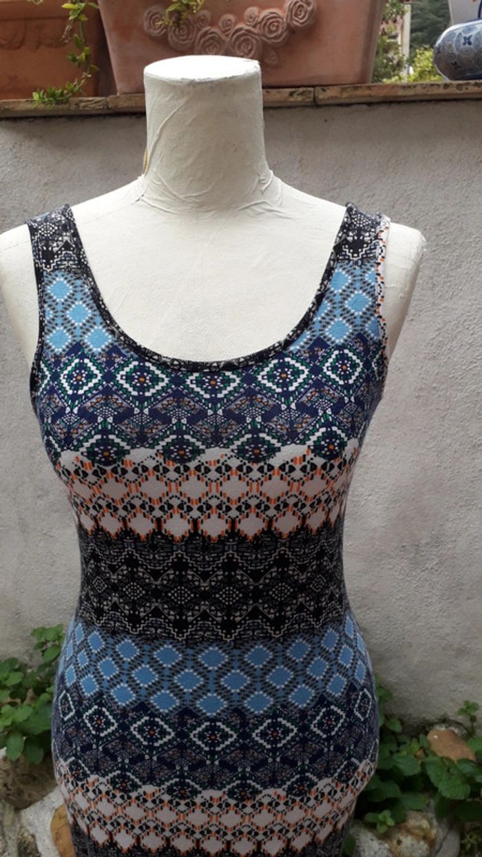 Robe tee-shirt marcel coton multicolore Longueur totale 66 cm Portée, en bon état