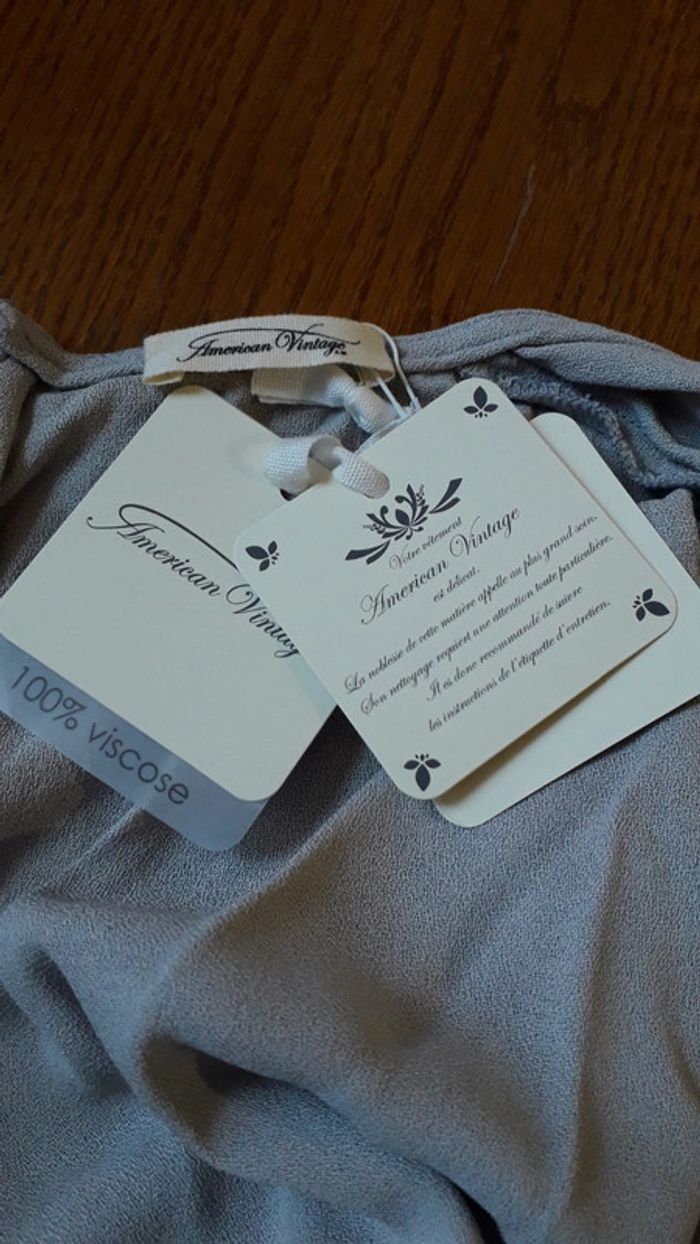 Combinaison pantalon manches courtes American Vintage Elastique à la taille. Gris clair Tissu 100% viscose façon crépon Je l'ai également en taille M Prix d'origine 110€ N'hésitez pas à me demander des mesures