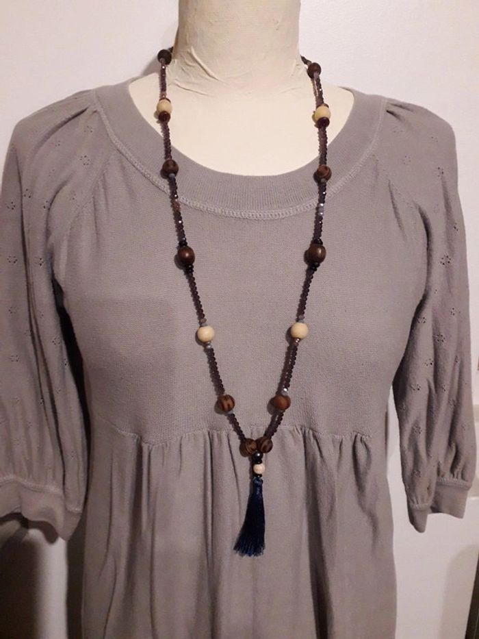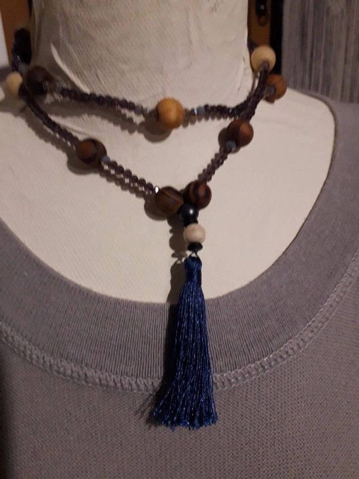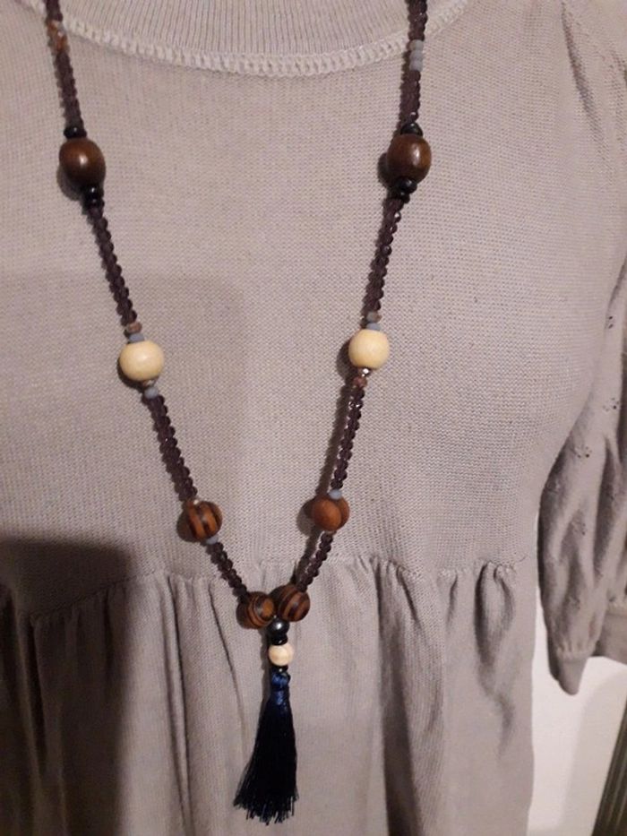 Sautoir perles de bois et perles de verre facette - photo numéro 2