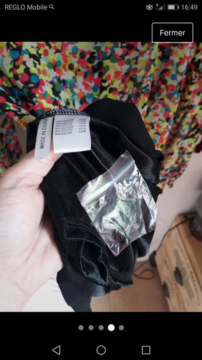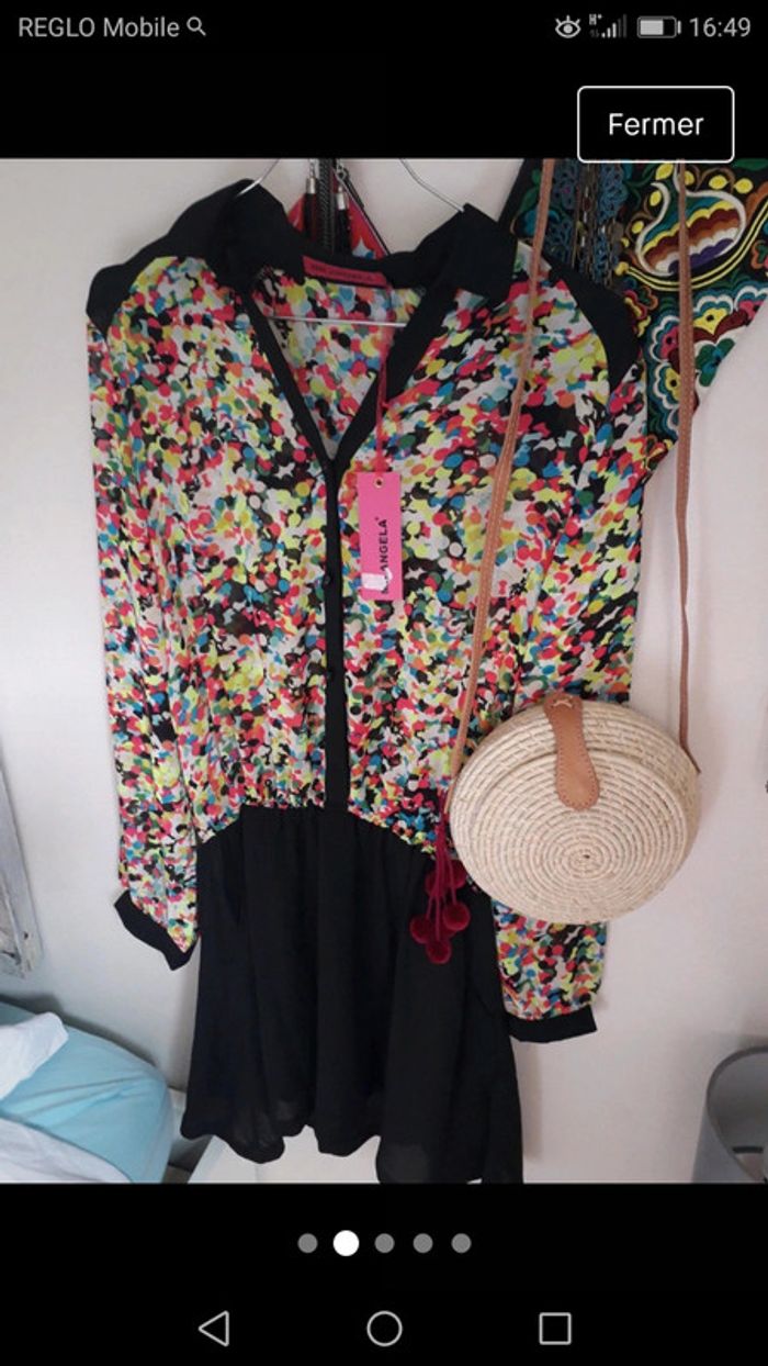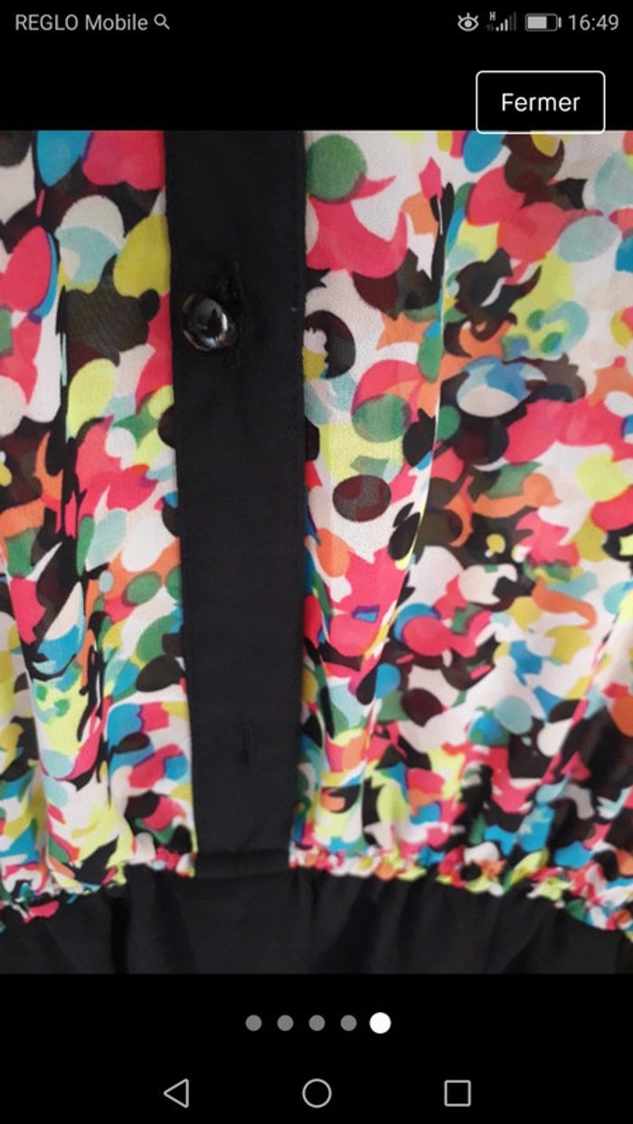 Avec étiquette, doublée, de couleurs fluo et noire, manque un bouton mais il y a un bouton de rechange ;) très classe peut se porter en tunique ou robe.