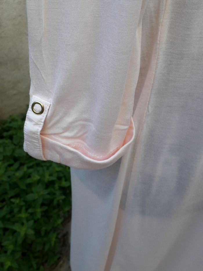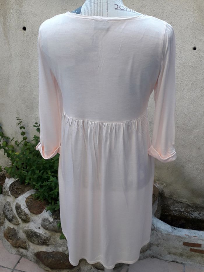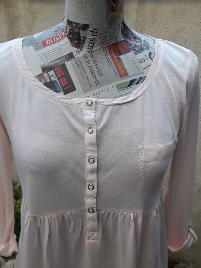 Robe tee-shirt coton léger rose pâle Boutonnage par boutons pression Manches modulables. smocke à la taille faiblard.