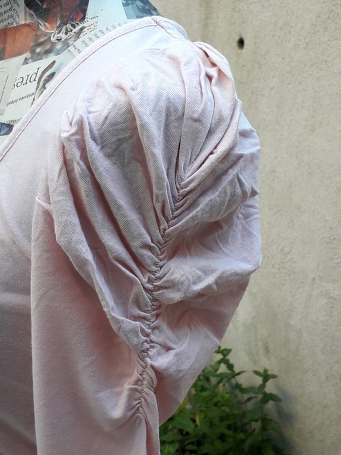 Tee-shirt manches 1/2 à effet bouffant sur épaules rose pâle - photo numéro 2