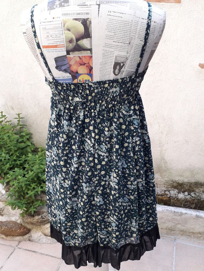 Robe foulard liberty à fines bretelles, smockes au dos Doublée, 95% polyester - 5% élasthanne Longueur de dessous la poitrine au bas de la robe 60,5 cm Du V du décolleté au bas de la robe 66,5 cm