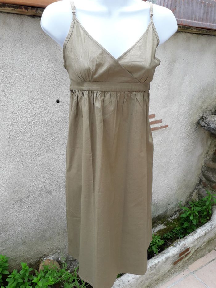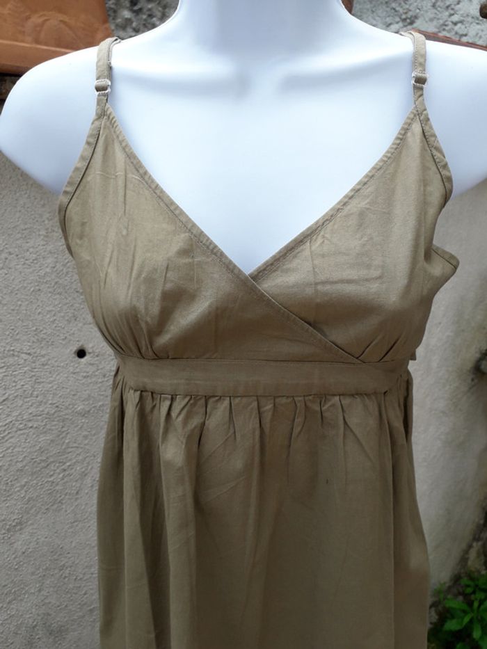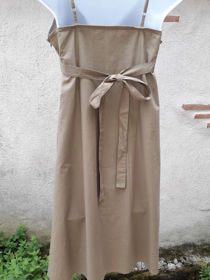 Robe en coton marron clair façon cache coeur Ceinture au dos - Bretelles réglables - Fermeture éclair sur le côté Longueur du haut de la poitrine au bas de la robe de 74 cm