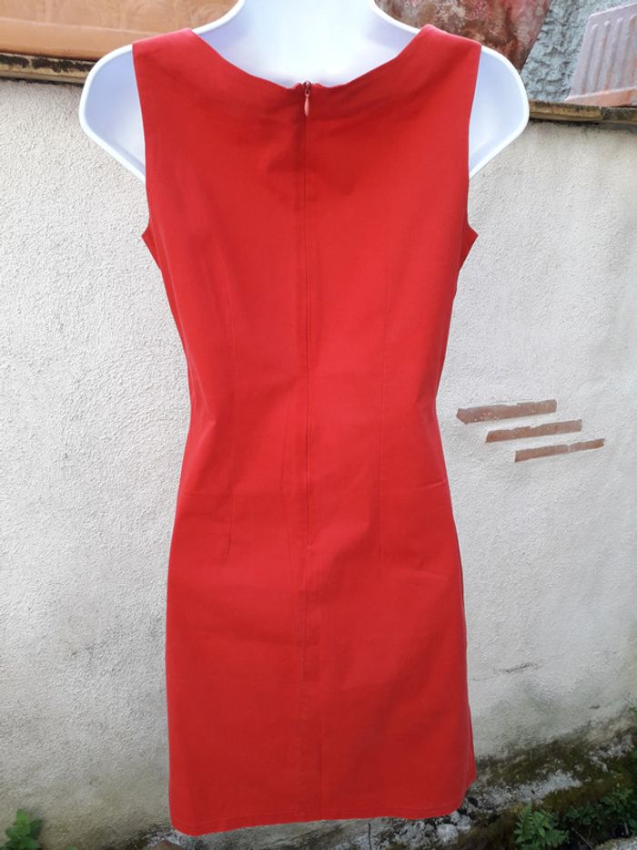 Robe rouge cintrée et droit 95% coton - 5% élasthanne Fermeture éclair à l'arrière Longueur du haut de l'épaule au bas de la robe de 85,5 cm