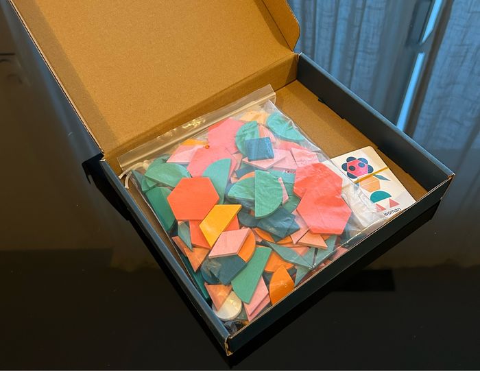Neuf. Cadeau parfait qui allie le ludique au pédagogique. Ce jeu de tangrams aux couleurs pastels permet aux enfants de travailler leur logique ainsi que leur motricité. Ils peuvent suivre les nombreux modèles ou suivre leur imagination.