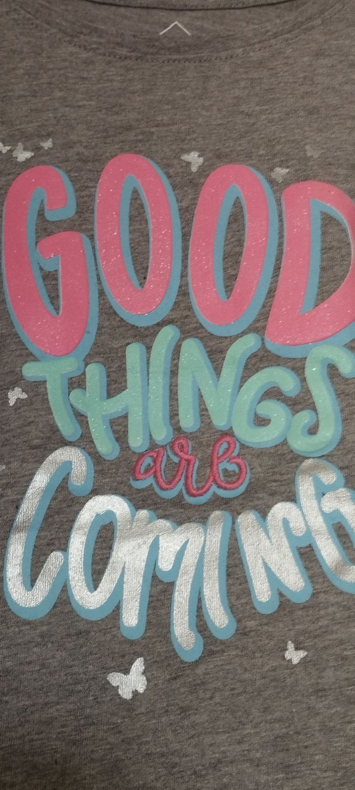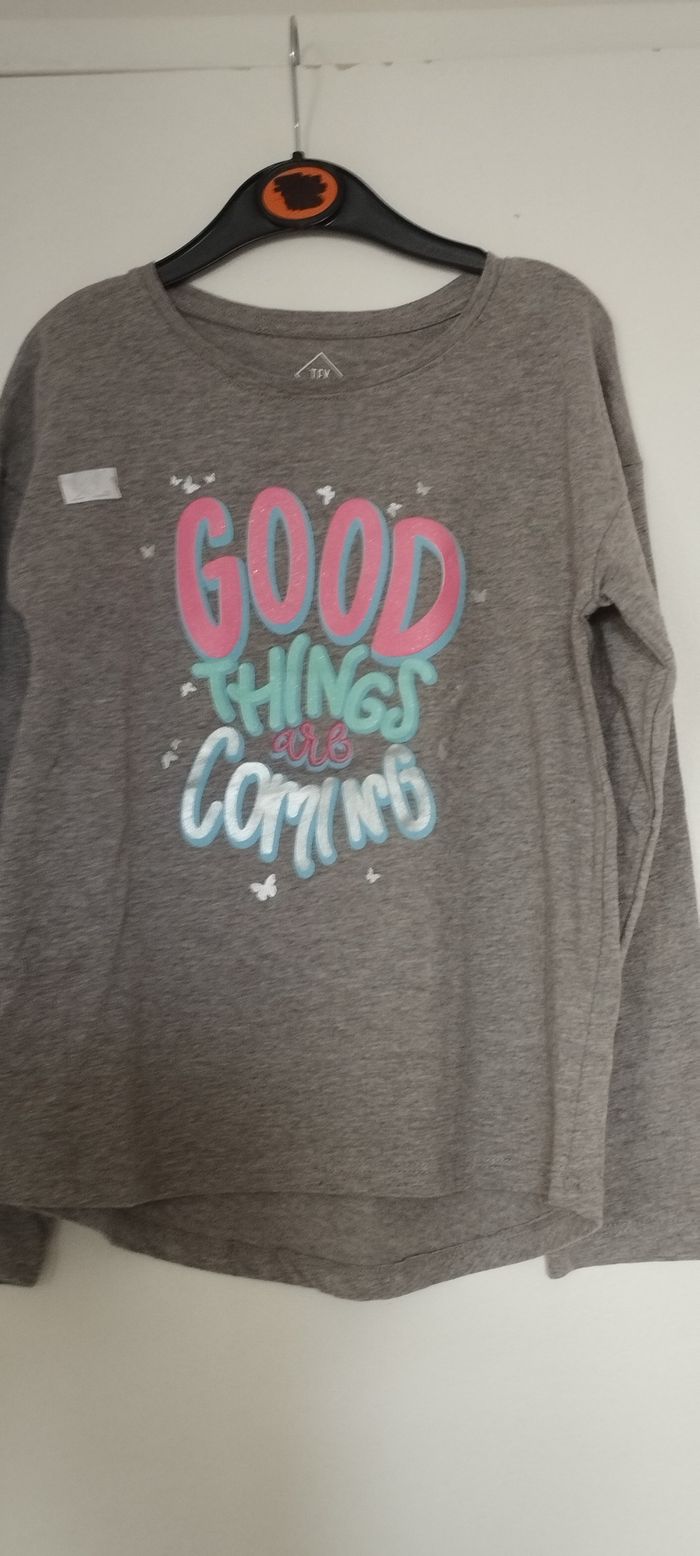 Tshirt Neuf pour enfant de 6/7 ans, de chez TEX. Manches longues. Impressions sur le devant en relief avec différences : plastifié, broderie, et brillance. Forme liquette à l'arrière.