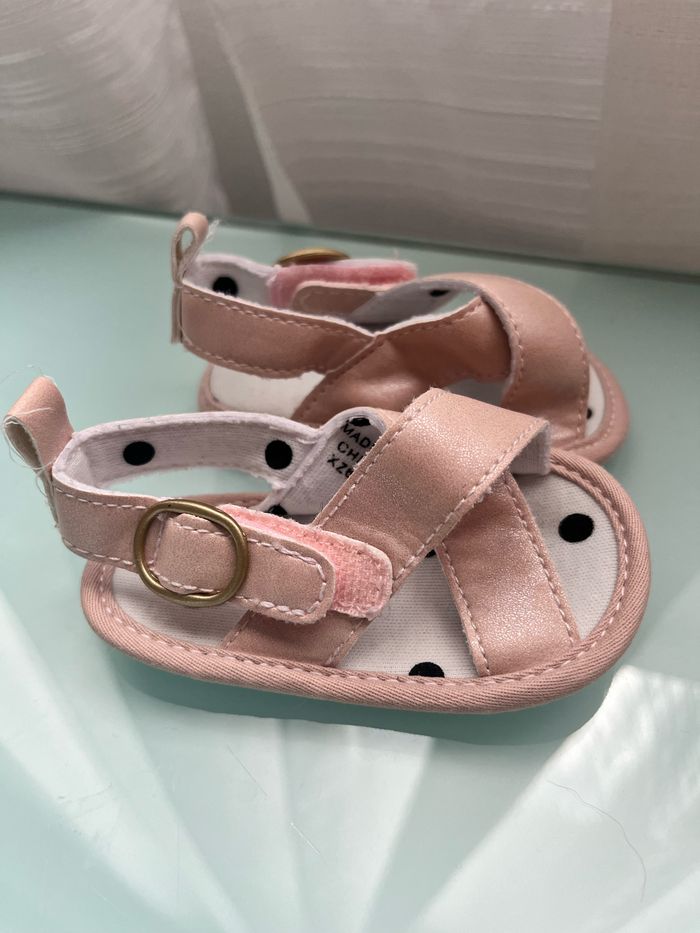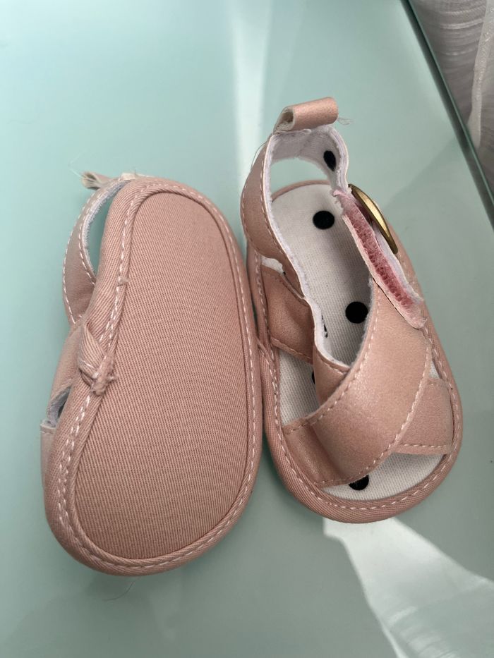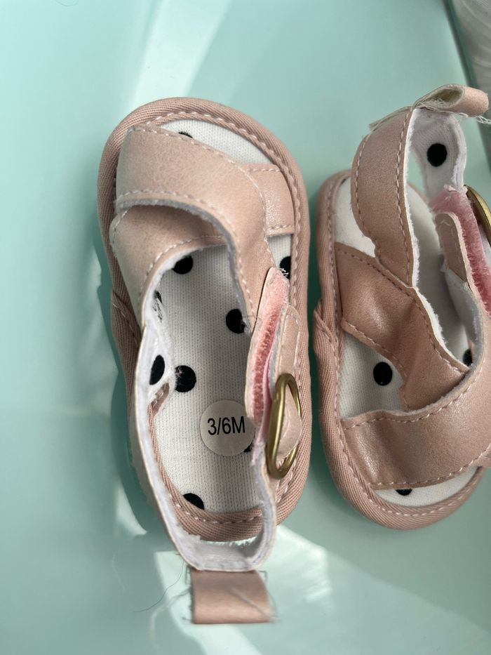 Sandales or rose 3-6 mois Fermeture à scratch sur le côté de la cheville Très bon état #chaussuresbebefillemaevaL