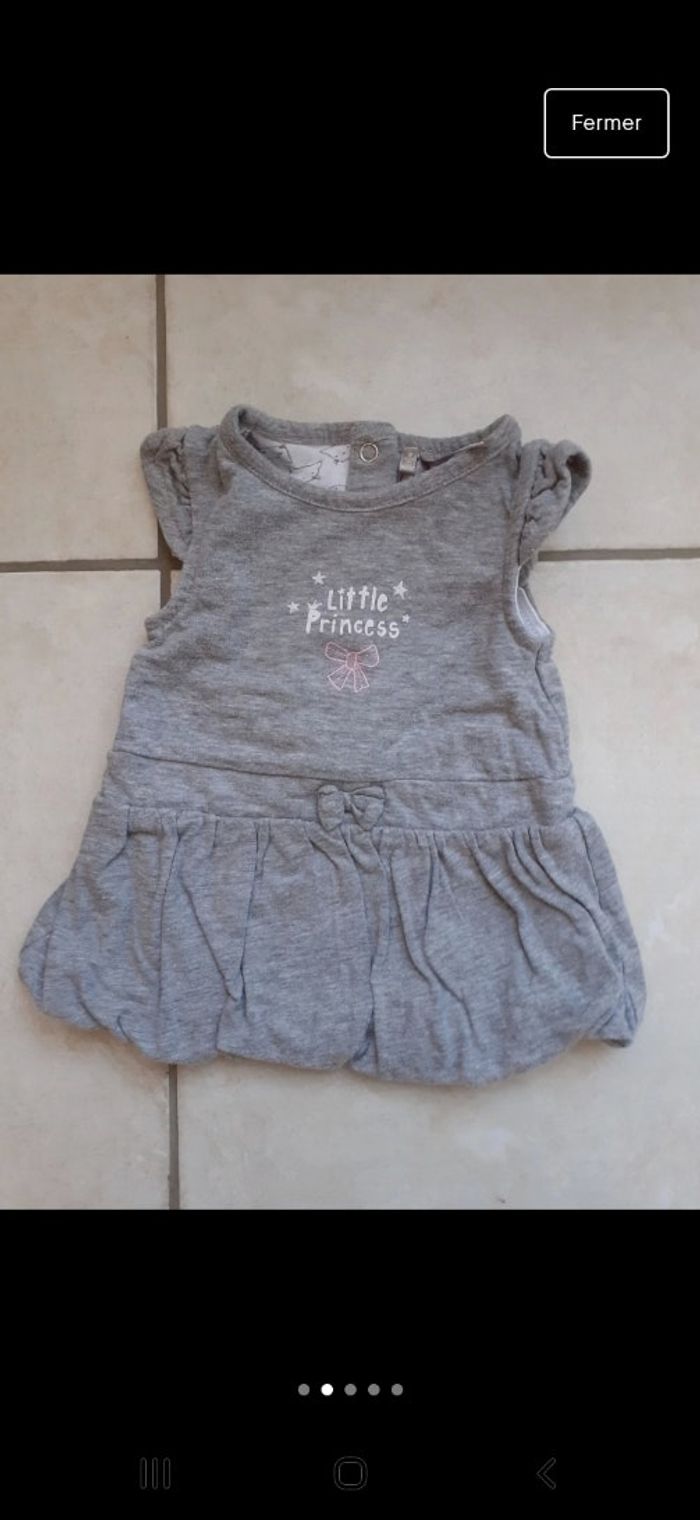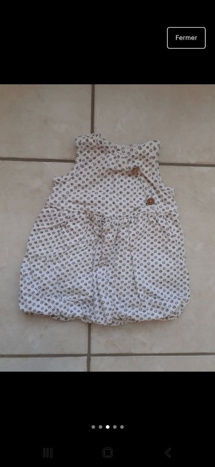 Lot de 2 robes courtes sans manches, l'une grise de marque orchestra et l'autre blanche avec motif beige de marque Little natural collection. Robes doublées, épaisses, qui tiennent bien chaud pour l'hiver ou la mi saison.
