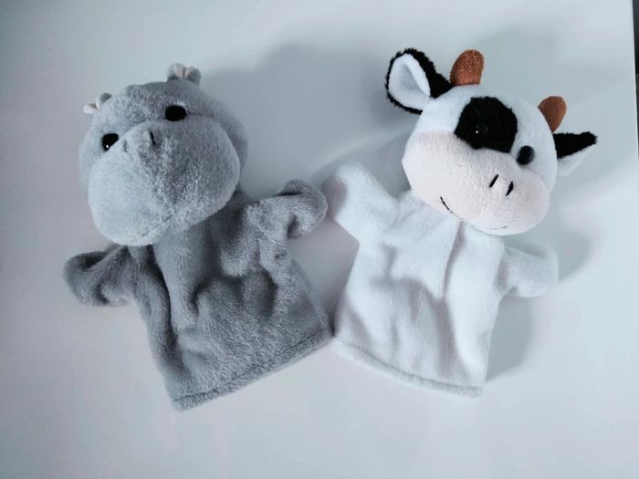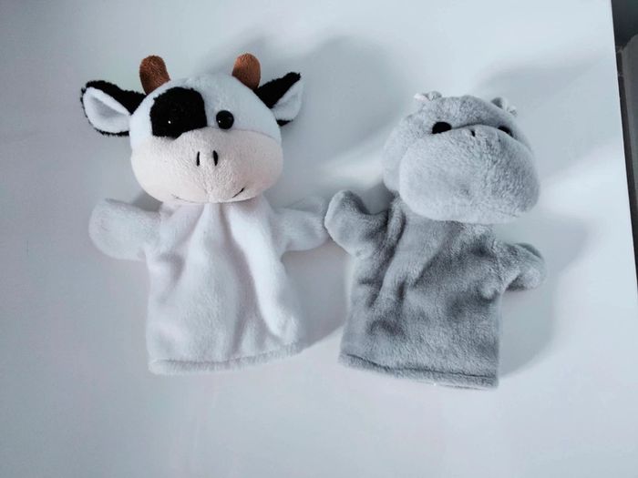 Lot peluches marionnettes - 🐮  et hippopotame - photo numéro 1