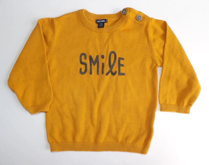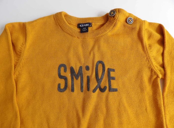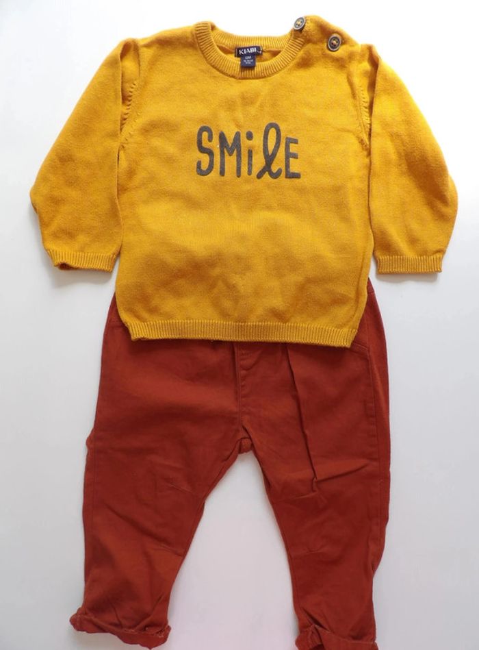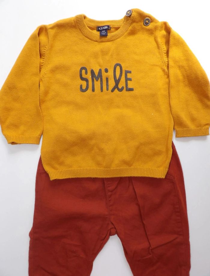 Ensemble pull + pantalon 12 mois Pull moutarde " smile" Pantalon rouille - Kiabi #mbuzziedouzemois #mbuzziegarçon #mbuzzieensemble #ensemblegarconkiabi12mois #ensemblegarcon12mois #pullmoutarde12mois #smile