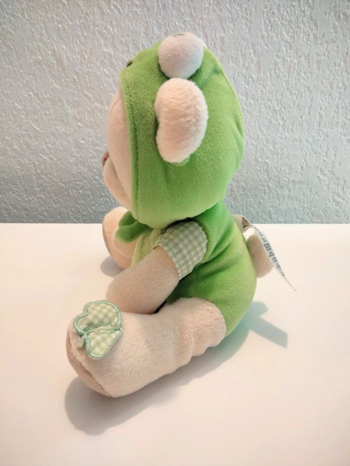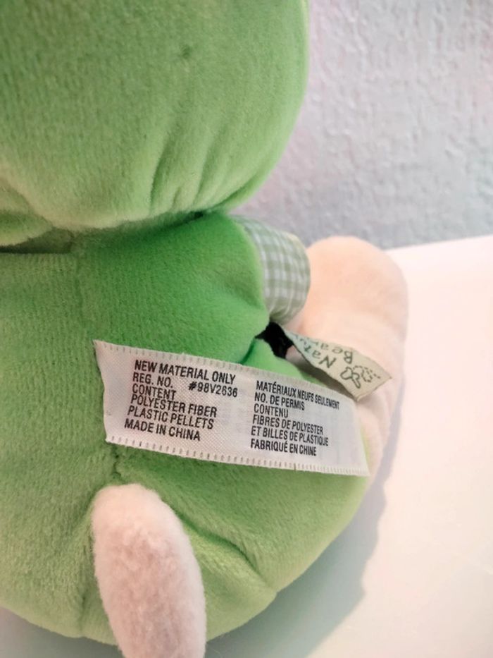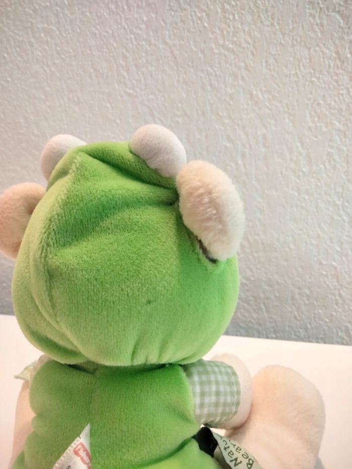 Ourson grenouille - Nature Bearries Marque : Fisher Price Cet ourson fait du bruit grâce à la présence d'un grelot au niveau du ventre Une très légère trace à l'arrière de la tête (voir photo) Hauteur : 19 cm Largeur max: 15 cm #mbuzziepeluches #naturebearries #pelucheourson #peluchegrenouille #fisherprice