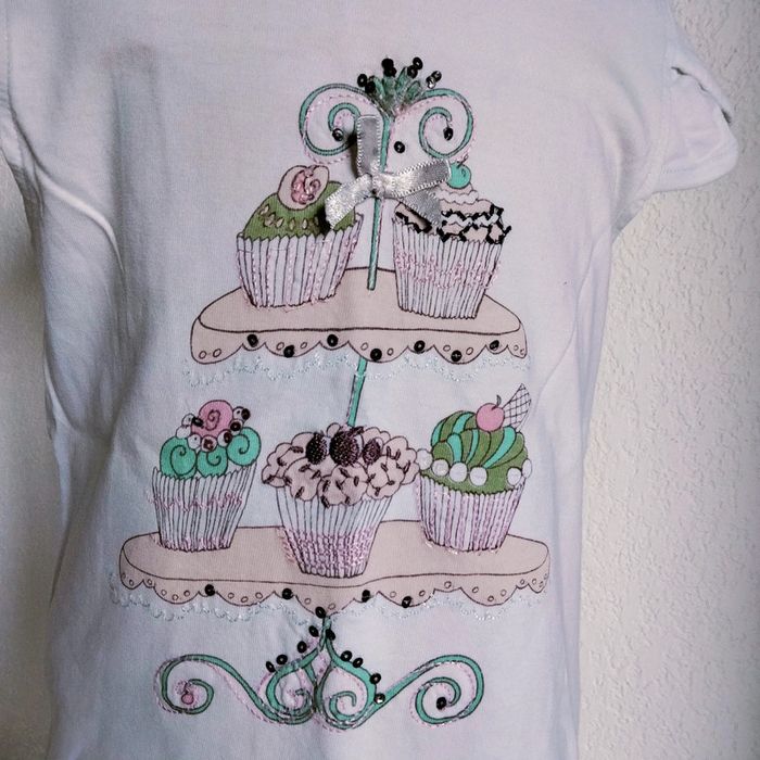 T-shirt avec cupcakes brodés - sergent major - 5 ans Autres articles en 5 ans #mbuzziecinqans #tshirtsergentmajor5ans #sergentmajorfille #sergentmajorfille5ans #sergentmajortshirt5ans #cupcake
