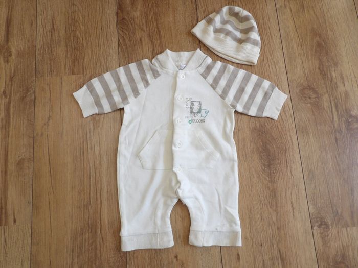 Ensemble garçon - Kitchoun - 1 mois - pyjama + bonnet Parfait état #mbuzziegarcon #mbuzzieunmois #mbuzzienaissance #ensemblegarcon1mois #kitchoun1mois #kitchoungarcon #bonnetnaissance