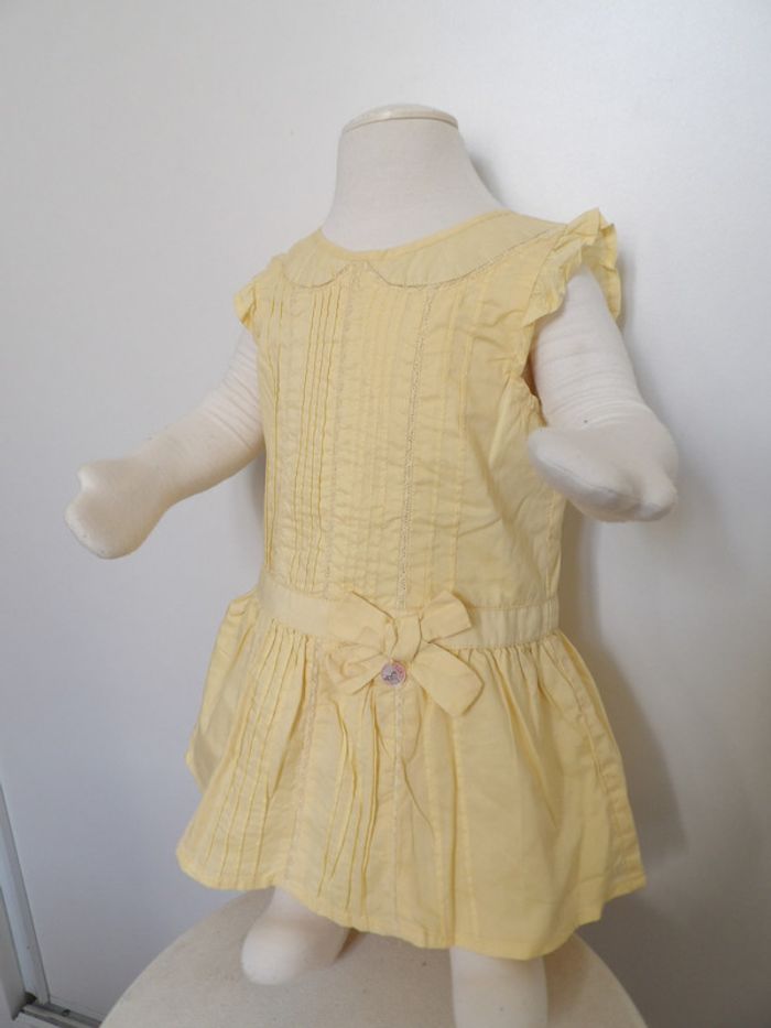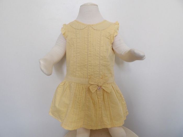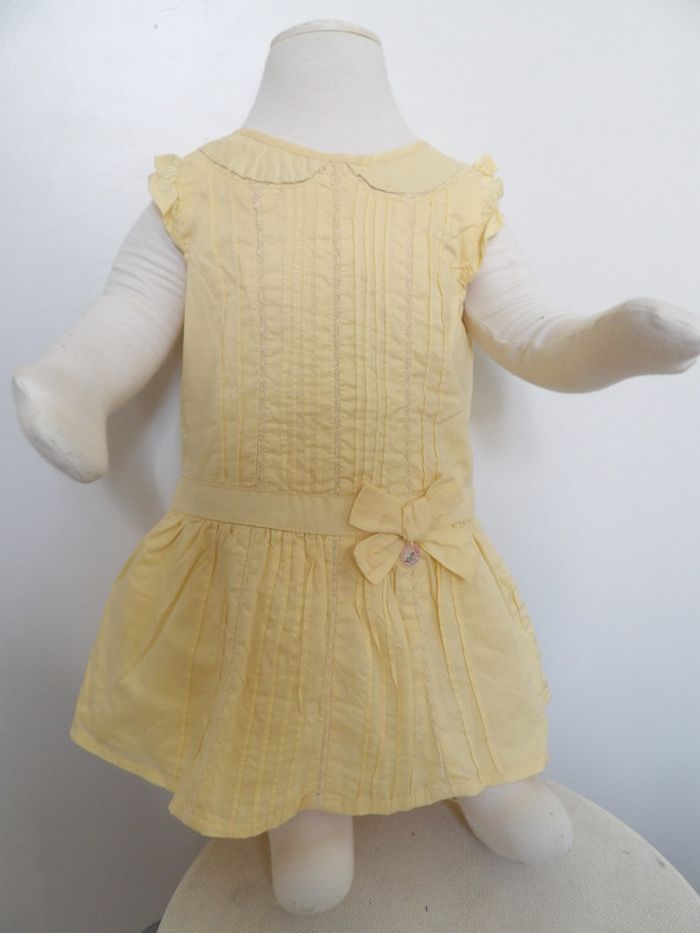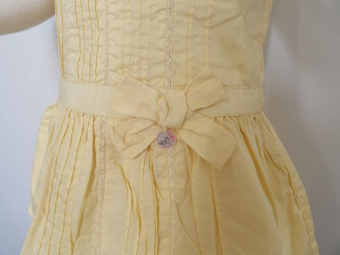 Robe été - Marque : Sergent Major - taille : 12 mois - col claudine cousu Jaune pastel Boutonnage dans le dos [très légère petite tache sur le nœud : voir dernière photo] #mbuzziedouzemois #robesergentmajor12mois #colclaudine #sergentmajor #robecolclaudine12mois #noeud #sergentmajor