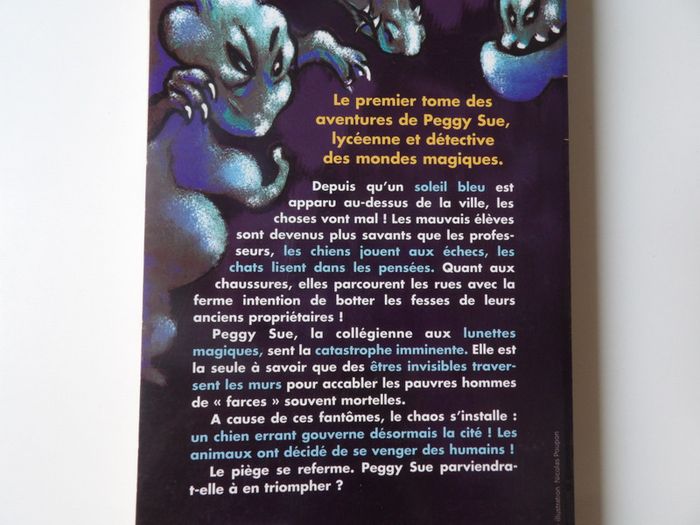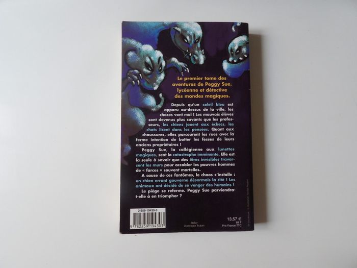 Livre Peggy Sue et les fantomes - Le jour du chien bleu - Brussolo - Plon Broché : 300 pages Tranche d'âges: 9 - 12 ans Editeur : Plon (12 avril 2001) Collection : Plon jeunesse Dimensions du produit : 14 x 2,4 x 22,5 cm Le premier tome des aventures de Peggy Sue, lycéenne et détective des mondes magiques. Depuis qu'un soleil bleu est apparu au-dessus de la ville, les choses vont mal ! Les mauvais élèves sont devenus plus savants que les professeurs, les chiens jouent aux échecs, les chats lisent dans les pensées. Quant aux chaussures, elles parcourent les rues avec la ferme intention de botter les fesses de leurs anciens propriétaires ! Peggy Sue, la collégienne aux lunettes magiques, sent la catastrophe imminente. Elle est la seule à savoir que des êtres invisibles traversent les murs pour accabler les pauvres hommes de " farces " souvent mortelles. A cause de ces fantômes, le chaos s'installe : un chien errant gouverne désormais la cité ! Les animaux ont décidé de se venger des humains ! Le piège se referme. Peggy Sue parviendra-t-elle à en triompher ? #mbuzzielivre #peggysue #jeunesse #livre