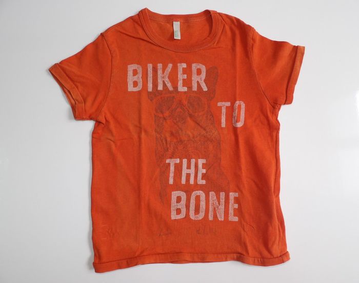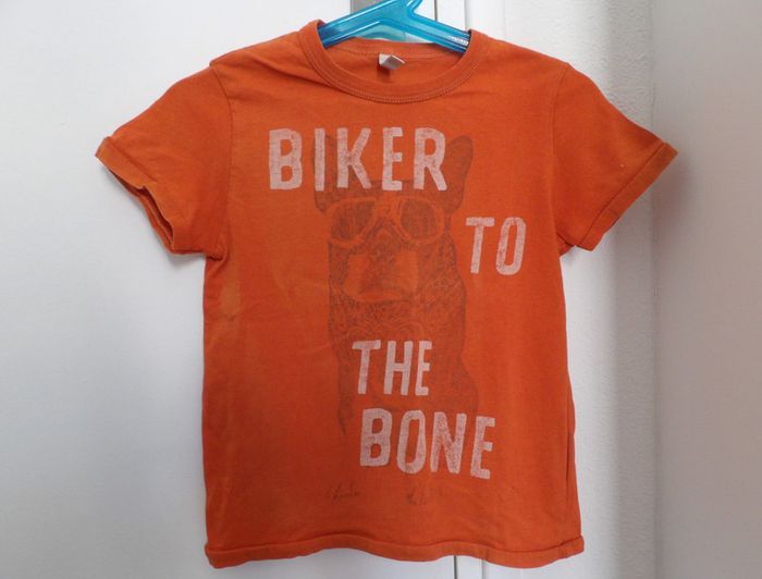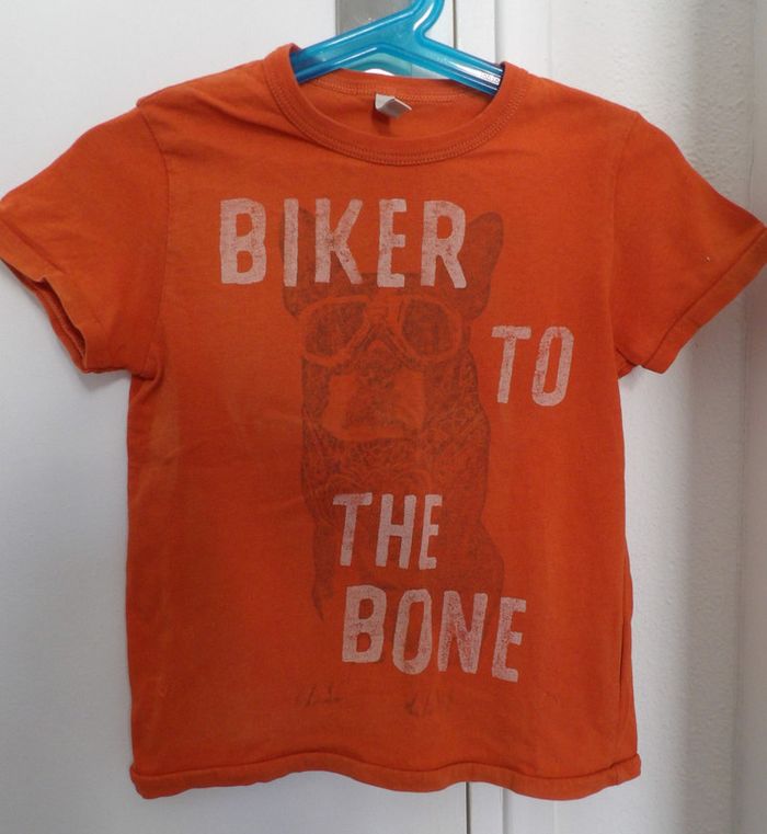 Tee shirt Manches courtes - Marque : Benetton - Taille : 2 ans - Motif : chien bulldogue - Orange #mbuzziedeuxans #tshirtbenetton2ans #mbuzziegarçon #benetton