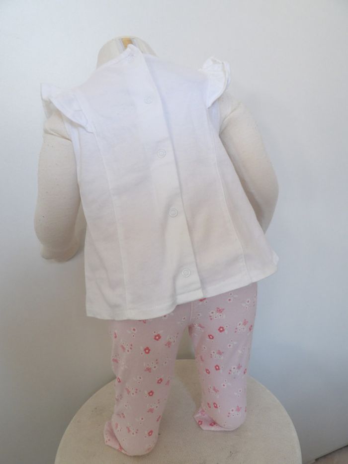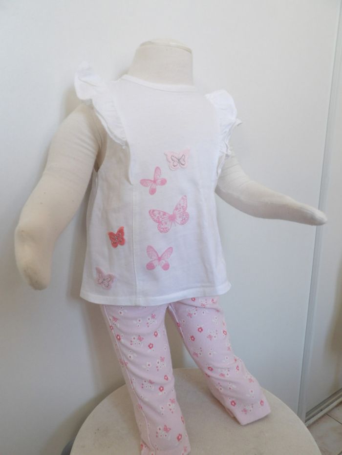 Pantalon rose pastel avec fleurs + tee shirt blanc avec manches volantées avec papillons en relief Très pratique ouverture par boutons pression sur l'arrière Marque : baby gemo #mbuzziesixmois #mbuzzieensemble #gemobaby6mois #gemobaby #papillons