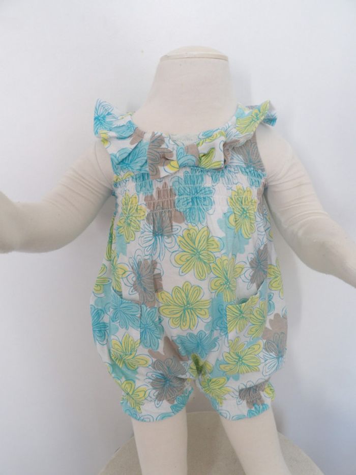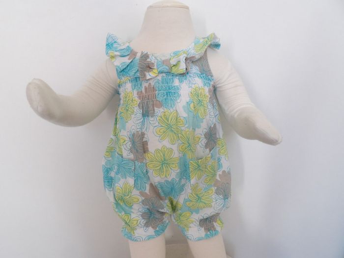 Combishort fleuri - 1 mois - volant et nœud sur le devant ¨Parfait état #mbuzzieunmois #combishort1mois #combinaisonfleurie1mois #combinaisonété1mois