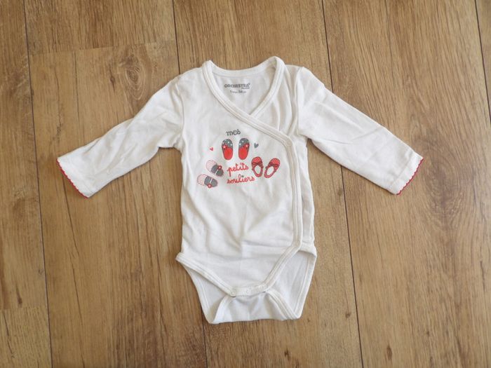 Body fille - manches longues - orchestra " mes petits souliers" - 1 mois - attache croisée par cache cœur #mbuzzieunmois #body1mois #bodymancheslonguesorchestra1mois #bodyfille1mois #bodycachecoeur1mois