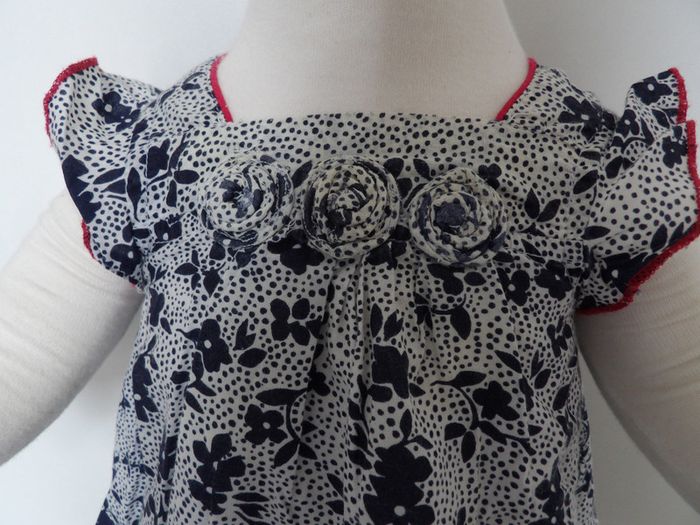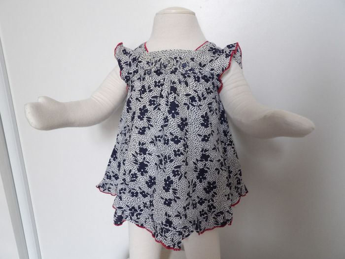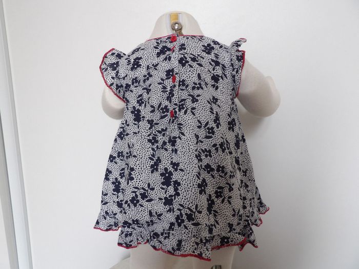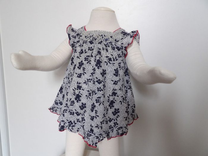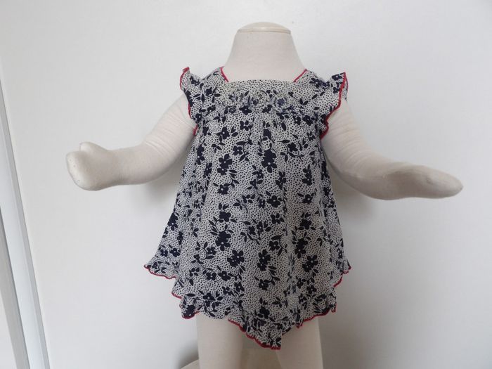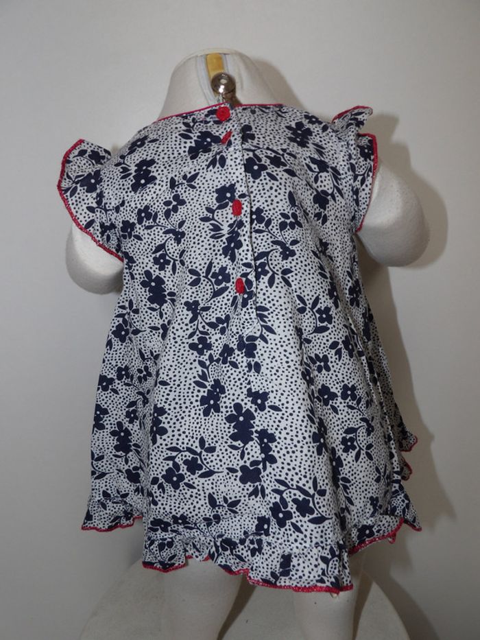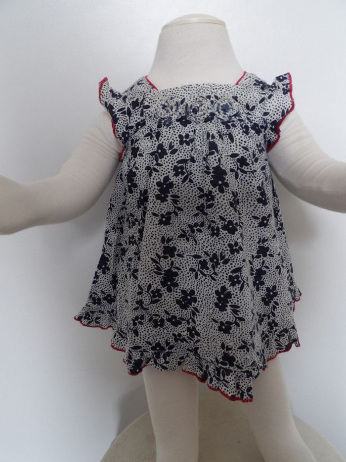 Robe été fleurie Marque : pik ouic - taille : 3 mois - volant sur le bas marine - blanc et liseré rouge #mbuzzietroismois #pikouic #pikouic3mois #robeété3mois #robepikouic3mois #robevolants3mois
