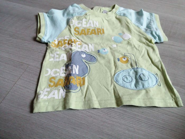 Je vends un tee shirts manches courtes vert clair et bleu clair , taille 12 mois. Très bon état. Maison non fumeur. Envoi rapide et soigné.