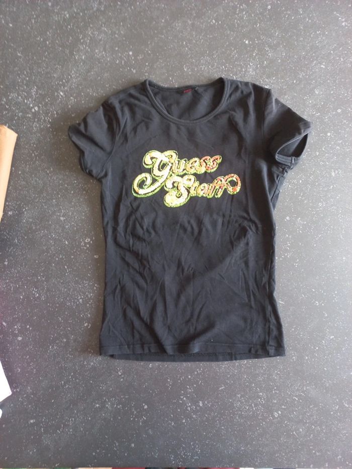 #36femmevanessa357 Tee-shirt manches courtes taille s Très bon état mis à part qu il a été recousu sur 1 côté quand on a enlevé les étiquettes