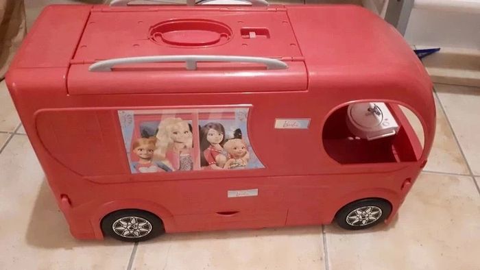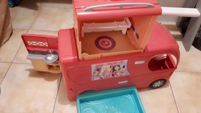 #jouetsvanessa357 Camping car barbie. En bon état certains autocollants sont pas entier
