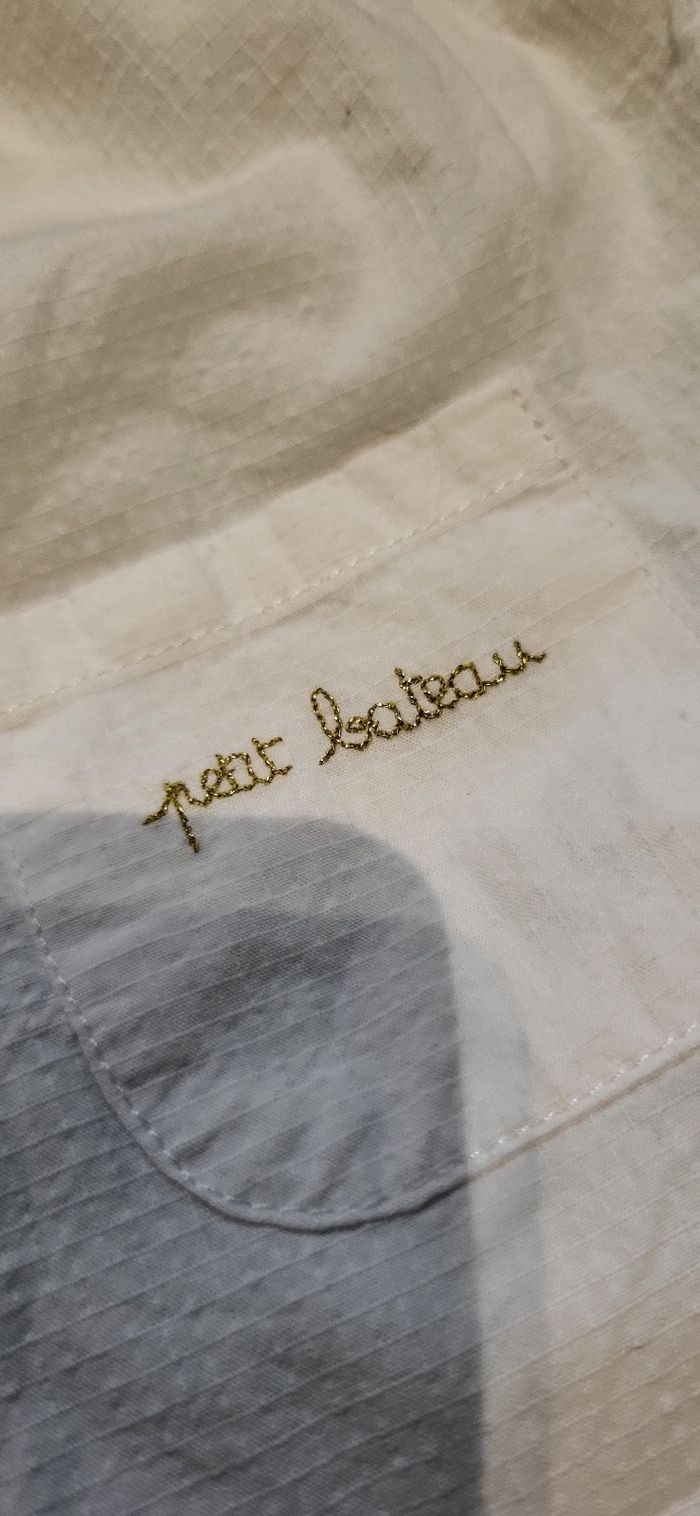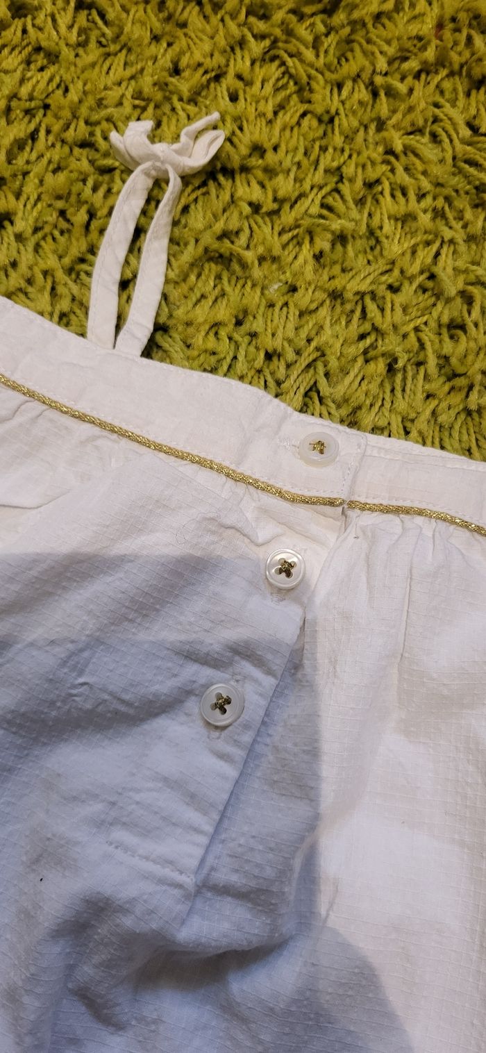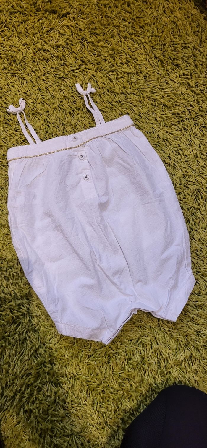 Jolie petite combi de la marque Petit Bateau. Lavée mais jamais portée. État neuf. Blanche avec détails dorés. Parfaite pour l'été ! Taille 6mois.