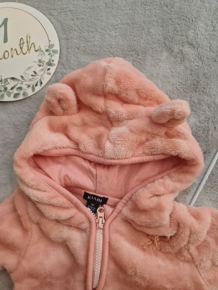 Veste rose toute douce à l'extérieur, se ferme par fermeture éclair. Marque Kiabi, Taille 1 mois 9 #chtitealice_taille1moisenfant #chtitealice_bebe #kiabi #1mois