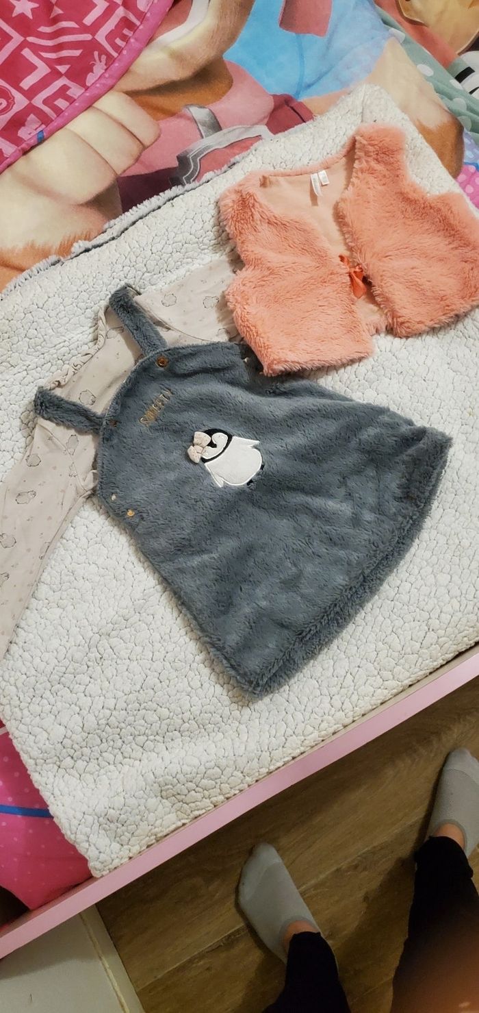 Robe et gilet tout doux sans manche en très bon état. Sous pull a perdu en peu de sa couleur mes reste en bon état Marque orquestra