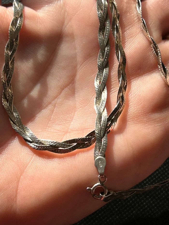 Beau collier plat en argent massif tressé femme TBE - photo numéro 8