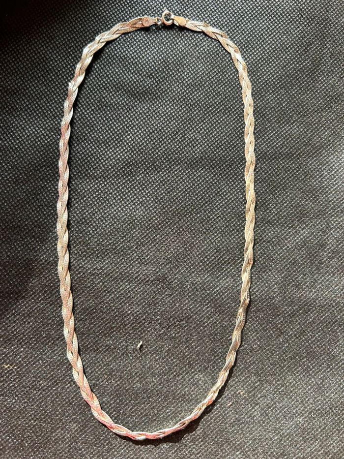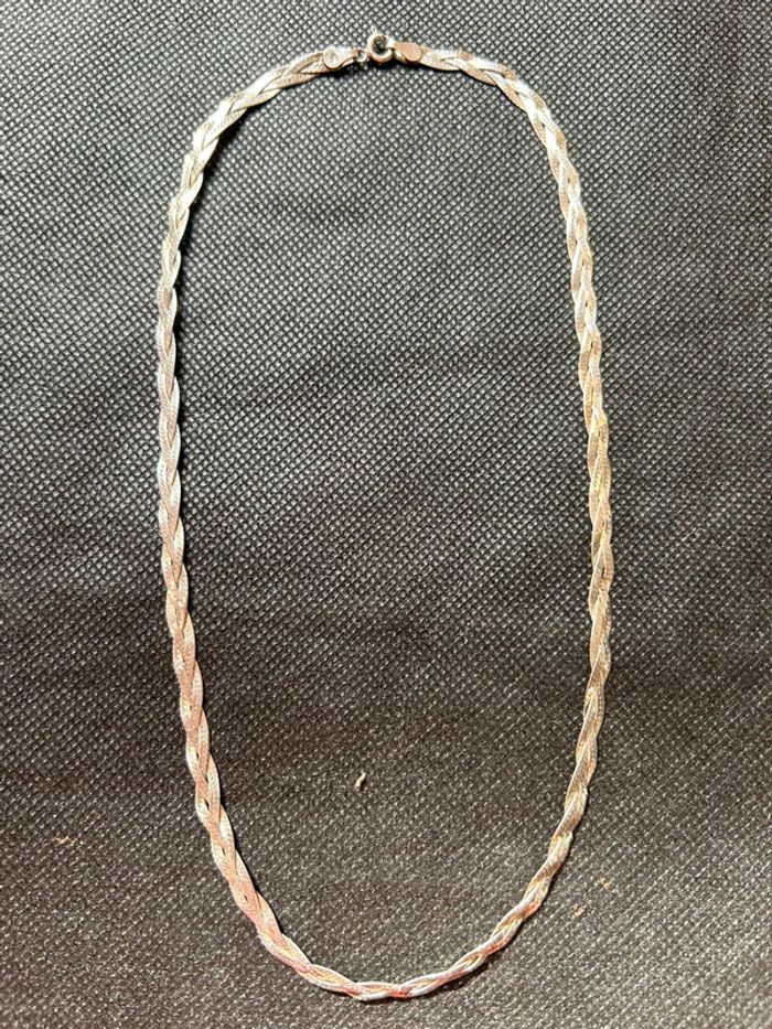 Beau collier plat en argent massif tressé femme TBE - photo numéro 1