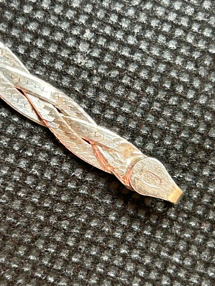 Beau collier plat en argent massif 925/1000, mailles tressées, pour femme, en très bon état. Longueur: 44 cm environ, poids: 7,3 grammes. #merine103 #merine103bijoux