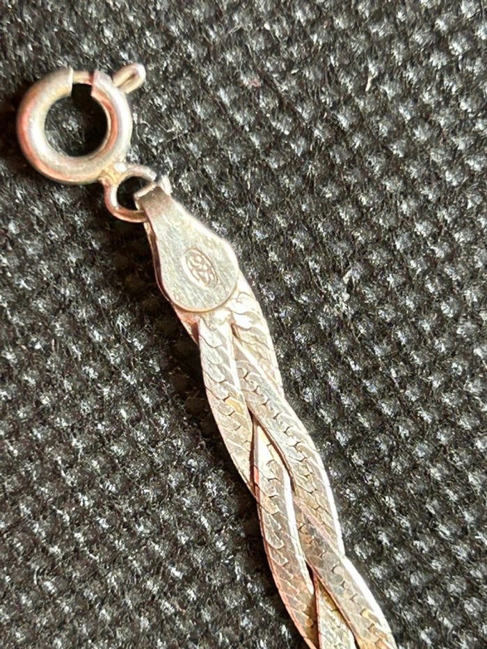 Beau collier plat en argent massif tressé femme TBE - photo numéro 9
