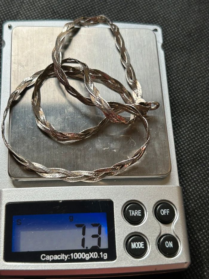 Beau collier plat en argent massif tressé femme TBE - photo numéro 6