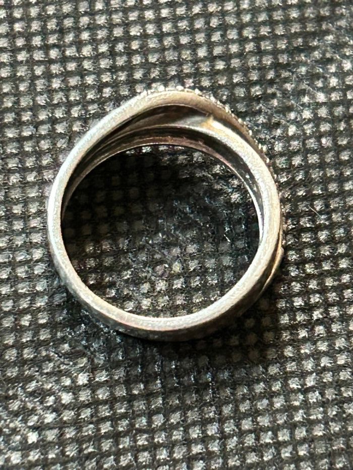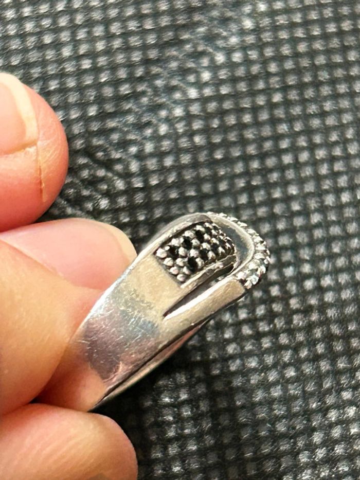 Jolie bague en argent massif avec pierres noires et blanches T. 50 femme TBE - photo numéro 9