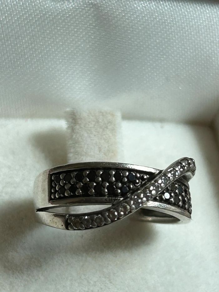 Jolie bague en argent massif avec pierres noires et blanches T. 50 femme TBE - photo numéro 2