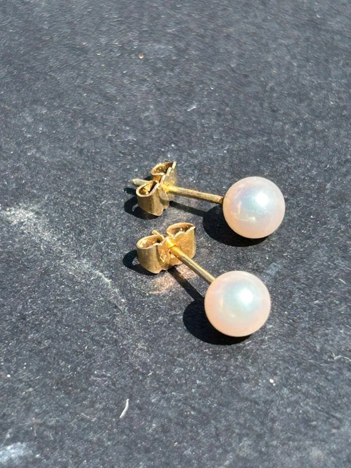 Jolie paire de boucles d’oreilles perles en or 18 carats femme TBE - photo numéro 6