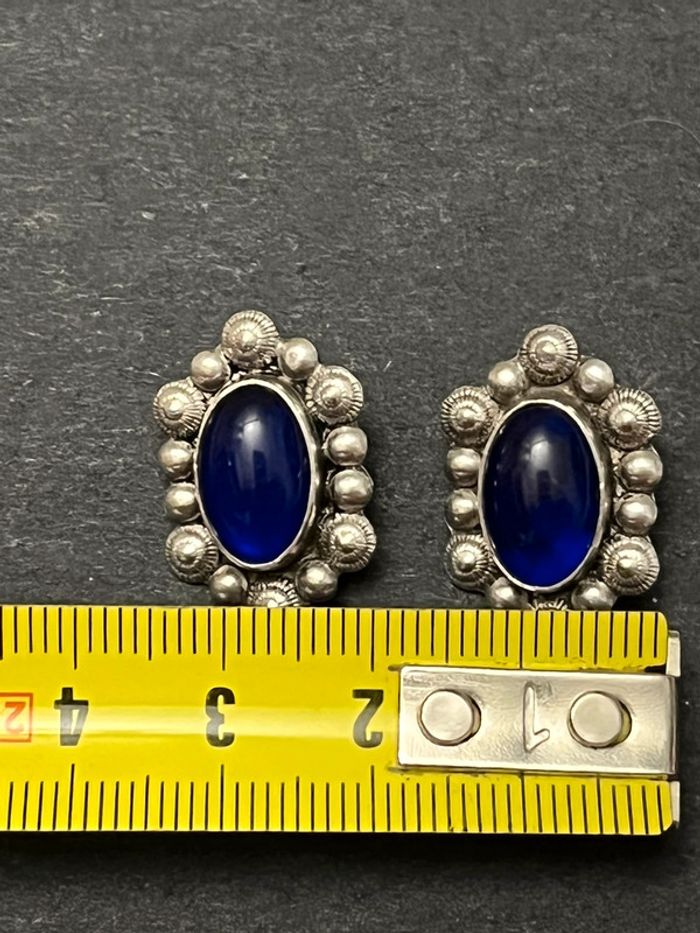 Jolie paire de boucles d’oreilles en argent massif avec pierre bleue femme TBE